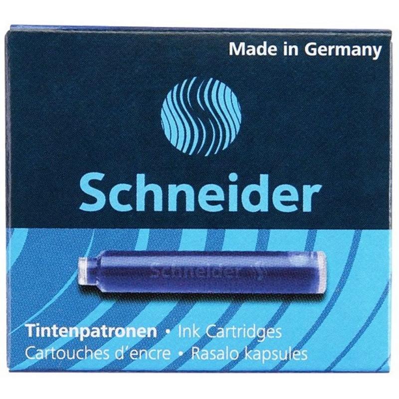 <p>Комплект сменных чернильных картриджей Schneider для перьевых ручек, 6 штук в картонной упаковке. Каждый картридж длиной 4 см содержит чернила синего цвета.</p>