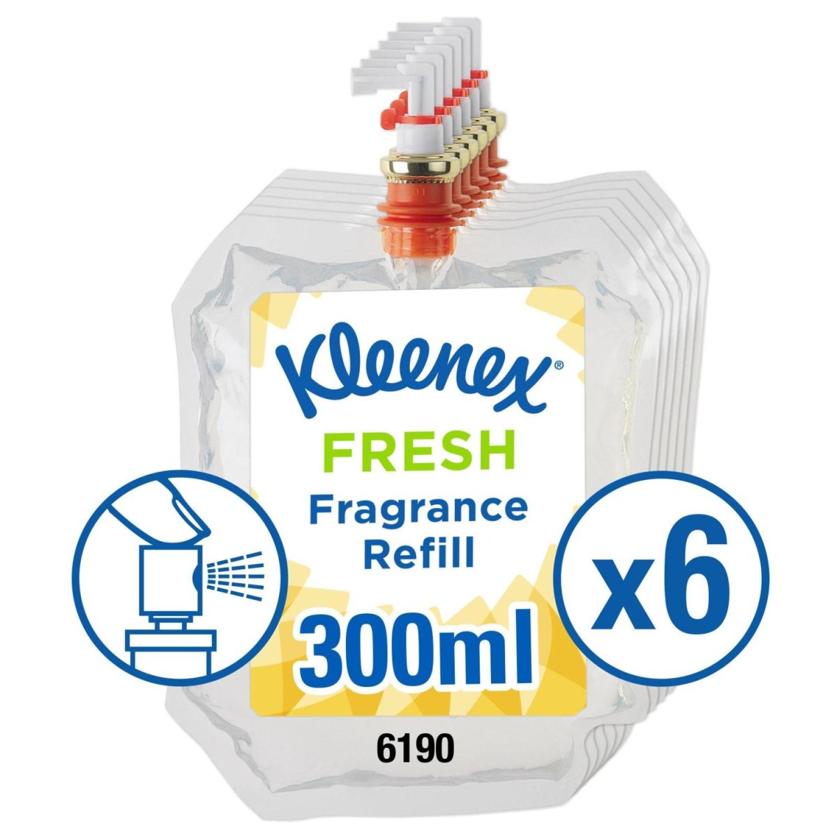 Картридж сменный для автоматического освежителя Kimberly-Clark Свежесть 300 мл (6 штук в упаковке, 6190)<br><br>Назначение предназначен для использования в автоматическом диспенсере. Применяется для ароматизации воздуха в помещении. <br>Способ применения: перед установкой в дозатор снять защитное кольцо под нажимным механизмом. <br>Меры предосторожности: осторожно! Воспламеняющаяся жидкость и пар. Вызывает серьёзное раздражение глаз. Беречь от тепла, не курить. При попадании в глаза осторожно промыть водой в течение нескольких минут. Если раздражение глаз продолжается обратиться к врачу. <br>Состав: :water, propan-2-ol, castor oil, hydrogenated, ethoxylated (2-methoxymethylethoxy) propanol, emerald leaf & palm mod 2 A298190 fragrance. <br>Условия хранения: хранить в прохладном, хорошо вентилируемом месте при температуре от 5°С до 40°С. Срок годности 24 месяца с даты изготовления (дату изготовления см. на упаковке).