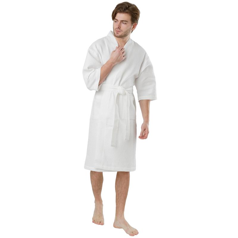 Халат вафельный Luscan Кимоно размер 54-56 (XXL) белый.<br> Вафельный халат белого цвета идеально подойдет как для домашнего использования, так и для отелей и гостиниц, саун и бассейнов, фитнес-центров, СПА-салонов, салонов красоты. Вафельная ткань состоит из 65% хлопка и 35% полиэстера, обладает отличными гигиеническими свойствами, мгновенно впитывает влагу, быстро сохнет, дает минимальную усадку при соблюдении рекомендаций по уходу, превосходно пропускает воздух и позволяет коже дышать.<br><b> Размер:</b> 54-56 (XXL).<br> <b>Плотность ткани:</b> 230 г/кв.м.<br><b> Рекомендации по уходу:</b> машинная стирка при температуре 30-40 градусов; барабанная сушка при низкой температуре.<br><b>Условия хранения:</b> хранить в сухих помещениях при положительной температуре на расстоянии не менее 1 м от отопительных приборов с предохранением от атмосферных осадков и влаги. Срок годности не ограничен при соблюдении условий хранения.<br><b> Упаковка:</b> ПВХ пакет.<br> <br> Внимание! Перед первым использованием обязательна стирка!