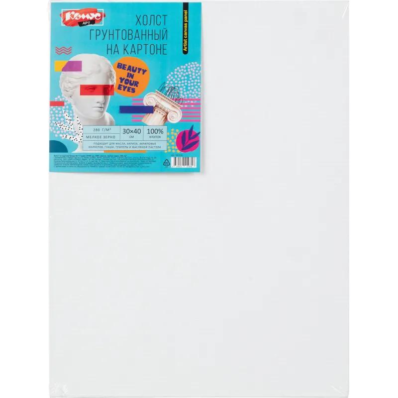 Холст на картоне Комус Арт Студия мелкозернистый хлопок акриловый грунт 30×40 см<br /> <br /> Это отличный выбор для художников, работающих с масляными и акриловыми красками. Изготовленные из 100% натурального хлопка, они обладают мелкозернистой текстурой, что идеально подходит для тонкой и детализированной живописи. Плотность холста в 280 г/кв.м обеспечивает его прочность и устойчивость к многократному нанесению краски. Холсты предварительно грунтованы тремя слоями грунта, что позволяет художникам сразу начать рисовать, минуя процесс подготовки поверхности. Благодаря картонной основе, холсты лёгки и удобны для переноски, что делает их идеальными для студентов и художников, часто работающих вне студии. Эти холсты на картоне — прекрасный выбор для тех, кто хочет сочетать качество с практичностью.