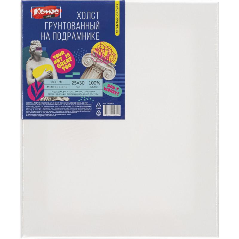 Холст на подрамнике Комус Арт мелкозернистый хлопок акриловый грунт 25×30 см<br /> <br /> Отличный выбор для студентов и мастеров-художников. Представляют собой профессионально натянутые на подрамник грунтованные мелкозернистые холсты из 100% натурального хлопка плотностью 280 г/кв.м, позволяющие сразу же приступить к работе.