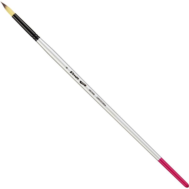 Кисть художественная Комус Арт круглая средней жесткости синтетика №6<br><br>Художественная кисть Комус Арт — это незаменимый инструмент для художников и любителей живописи, который поможет реализовать творческие идеи и создать яркие шедевры.<br>Особенности и преимущества изделия: синтетический ворс — средней жесткости, эластичный, обеспечивает плавное и точное нанесение краски, а значит — ровные и красивые штрихи. <br>Круглая форма идеально подходит для рисования мелких деталей, линий, а также для создания плавных переходов и теней. <br>Длинные ручки обеспечивают удобный хват и контроль над кистью во время работы с большими форматами холста. <br>Прочный материал — деревянная ручка и качественный синтетический волос обеспечивают долговечность кисти.<br>Универсальность: кисть Комус Арт подходит для работы с разными видами красок — акварелью, акрилом, гуашью, темперой, тушью. <br>Идеальна для использования в художественных училищах, творческих кружках или же просто в домашних условиях.