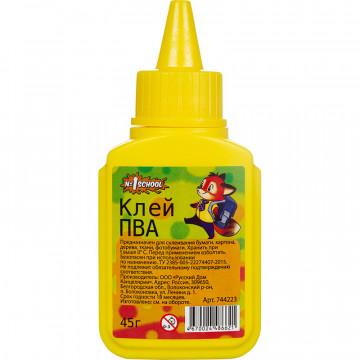 Клей ПВА № 1 School. Предназначен для склеивания бумаги, картона, дерева, ткани, кожи, фотобумаги. Подходит для декоративных работ. Перевозить и хранить флакон необходимо при температуре выше 0 градусов Цельсия. В одном флаконе содержится 45 г (44.5 мл) клея ПВА.<br><br><b>В рамках ребрендинга производится перевод данного артикула с ТМ № 1School на ТМ Комус Класс с сохранением всех потребительских характеристик товара. На переходный период допускается поставка данной продукции в двух вариантах дизайна.</b>