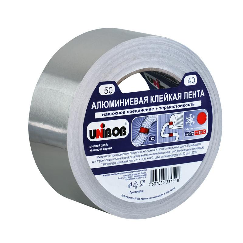<p>Клейкая высокопрочная алюминиевая лента Unibob. Алюминиевая клейкая лента применяется при проведении ремонтных, монтажных и теплоизоляционных работ. Металлизированная лента используется для герметизации стыков и швов деталей с металлическим покрытием (труб, вентиляционных рукавов). Обеспечивает надежное соединение и термостойкость. Клеевой слой на основе акрила обеспечивает отличную адгезию ко всем поверхностям. Лента на акриловой основе демонстрирует лучшие показатели стабильности при работе в агрессивных средах, именно поэтому ее чаще всего выбирают для длительной, стабильной склейки поверхностей, которым не должны угрожать различные условия окружающей среды.<br><br>Основные преимущества продукта<br>Обеспечивает надежное соединение стыков и швов деталей с металлическим покрытием (труб, воздуховодов). Морозоустойчива и термостойкая. Обеспечивает защиту частей оборудования от проникновения пара, грязи, пыли и влаги. Устойчива к стиранию и воздействию влаги. Клеевой слой на основе акрила обеспечивает отличную адгезию ко всем поверхностям. Цветная информативная этикетка. Каждый рулон упакован в термоусадочную пленку, что сохраняет все свойства и технические характеристика товара.<br><br>Работая с клейкой алюминиевой лентой, необходимо следить за выполнением следующих правил:<br>— не рекомендуется повторное использование ленты, если в этом нет острой необходимости (сцепление с поверхностью будет некачественным);<br>— нельзя дотрагиваться незащищенными руками до клеевого слоя;<br>— нужно следить, чтобы до начала работ клеевой слой не загрязнился, иначе адгезия с поверхностью ухудшится;<br>— также перед проведением работ рекомендуется высушить, очистить и обезжирить поверхность, на которую будет наноситься лента;<br>— если предполагается осуществление работ в помещениях с повышенной влажностью, то стоит выбрать другой способ герметизации или изоляции, так как алюминиевая клейкая лента утратит большую часть своих эксплуатационных характеристик.<br><br>Температура крепления ленты: от 10 до 40 градусов по Цельсию. Рабочая температура: от −20 до 120 градусов по Цельсию.<br>Толщина ленты — 70 мкм. Цвет: серый. Ширина — 50 мм. Длина намотки составляет 40 м.<br>Количество лент в упаковке: 1 шт.<br>Количество упаковок в транспортном коробе: 24.</pr>