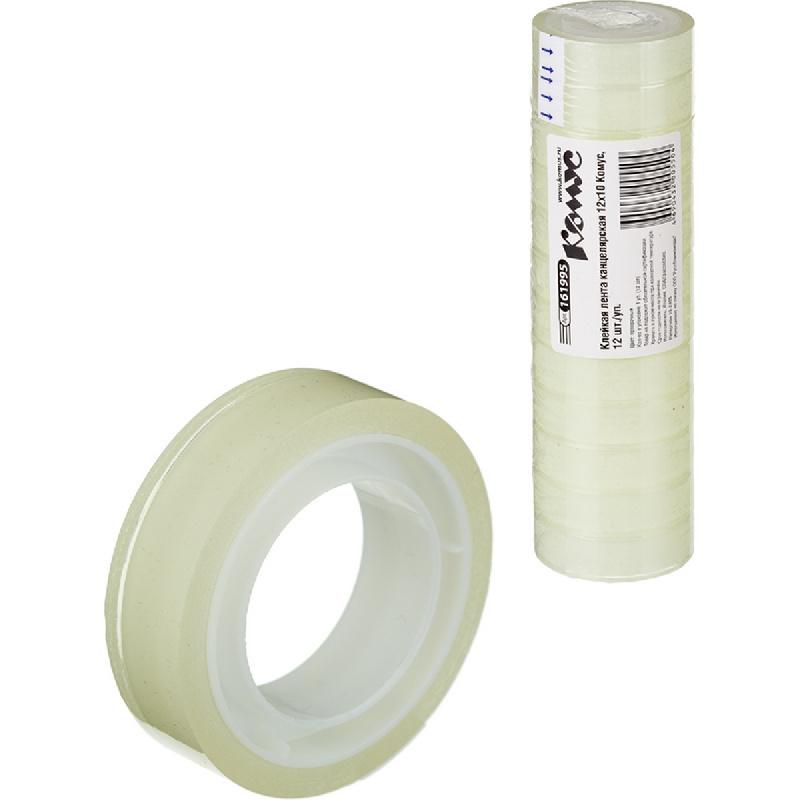 Канцелярская клейкая лента Комус разработана специально для канцелярских нужд.<br><br>Подойдет для решения большинства задач в офисе, школе и дома, связанных с упаковкой, запечатыванием, мелким ремонтом и творчеством.<br><br>Имеет гарантированную длину 10 м и ширину 12 мм и обладает высокой клеящей способностью. Отличается прозрачностью и прочностью 35 мкм. <br><br>Имеет специальное покрытие, благодаря которому разматывается равномерно и легко.<br><br>Упаковка — термоусадка из 12 роликов.<br><br>Канцелярская клейкая лента Комус проста и удобна в использовании.