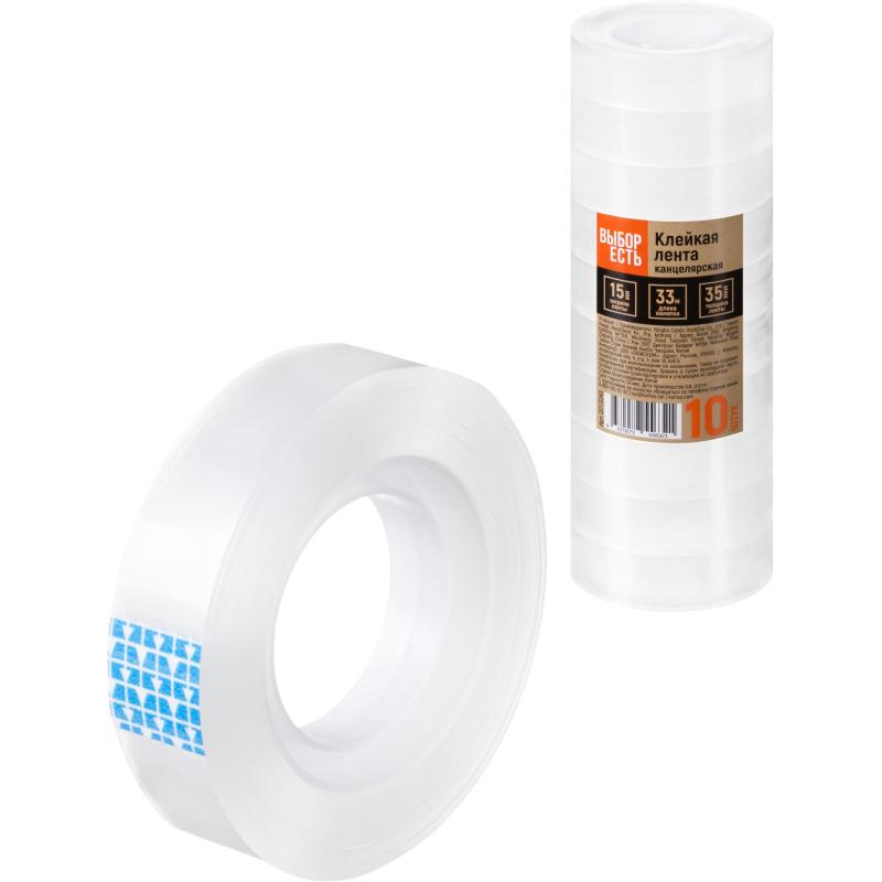 Клейкая лента Выбор есть разработана специально для решения большинства канцелярских задач в офисе, школе и дома. Она поможет с упаковкой, запечатыванием, мелким ремонтом, станет незаменимым инструментом в скрапбукинге. <br>Имеет длину 33 м и ширину 15 мм, обладает высокой клеящей способностью. Отличается прозрачностью и плотностью 35 мкм. Может быть использована в диспенсере.<br>В упаковке 10 штук.