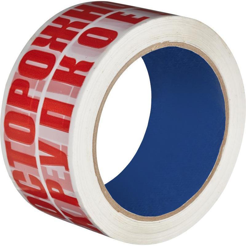 Упаковочная клейкая лента с логотипом с логотипом Осторожно!!! Хрупкое!!! толщиной 48 мкм. Отличается высокой адгезией клея (слипанием с поверхностью), стойкостью к разрыву. Ширина ленты — 48 мм, длина рулона — 66 м. Широкая клейкая лента предназначена для упаковки объемных и тяжеловесных грузов, не теряет свойств на открытом воздухе при температуре от 0 до 40°C. Не хранить под прямыми солнечными лучами. <BR>Количество лент в упаковкеи 6 штук. <BR>Количество упаковок в транспортном коробе 36 штук. <BR> <BR>Ленту липкую хранят в вертикальном положении в крытых складских помещениях, при температуре от 5 до 30°С. <BR>Перед использованием липкую ленту необходимо выдержать при температуре выше 20°С не менее 24 часов.