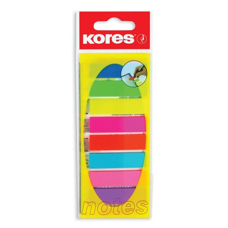 Пластиковые клейкие закладки Kores, ширина которых составляет 12 мм, могут служить закладками в документах, использоваться для записи краткой информации, для выделения текста. Яркие неоновые цвета закладок акцентируют Ваше внимание на нужном моменте в документе или тексте.<br><br>Прозрачный пластик, из которого они изготовлены, не скрывает при этом самого текста. Клейкие закладки легко удаляются, не оставляя следов и не повреждая бумагу. Одну закладку можно использовать несколько раз. Размер одной закладки 12×45 мм. На закладках можно писать ручкой, чернографитовым карандашом, маркером, фломастером. В упаковке 8 ярких неоновых цветов по 25 листов каждого цвета.<br><br>Чтобы увеличить срок службы закладок, пожалуйста, следуйте рекомендациям:<br><br>1. Отделять закладку от блока следует вдоль клеевой полосы. Так можно избежать скручивания и последующего отклеивания закладки.<br>2. Прежде чем наклеивать закладку, убедитесь в отсутствии грязи и пыли на поверхности. На чистой поверхности срок службы клеевого слоя более продолжителен.