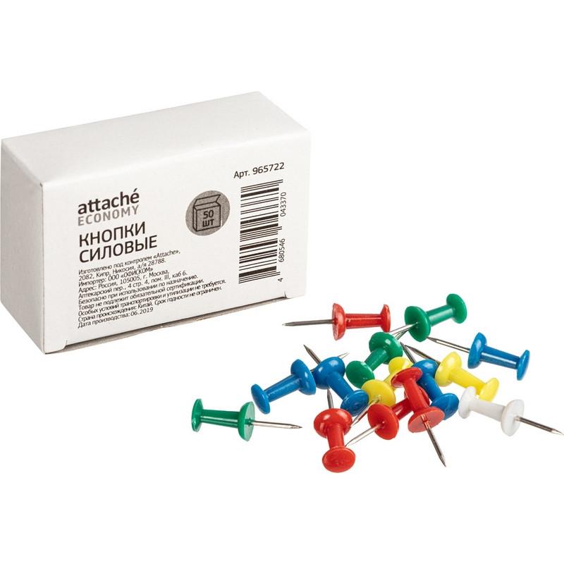 Кнопки силовые Выбор есть (Attache Economy) с пластиковым цветным держателем. Длина кнопки — 22 мм, длина иглы — 10 мм. Поставляются в картонной коробке по 50 штук. Используются для крепления информации к доскам пробкового типа, для планирования и отметок.<br><br>В рамках ребрендинга производится перевод данного артикула с ТМ Attache Economy на ТМ Выбор есть с сохранением всех потребительских характеристик товара. На переходный период допускается поставка данной продукции в двух вариантах дизайна.