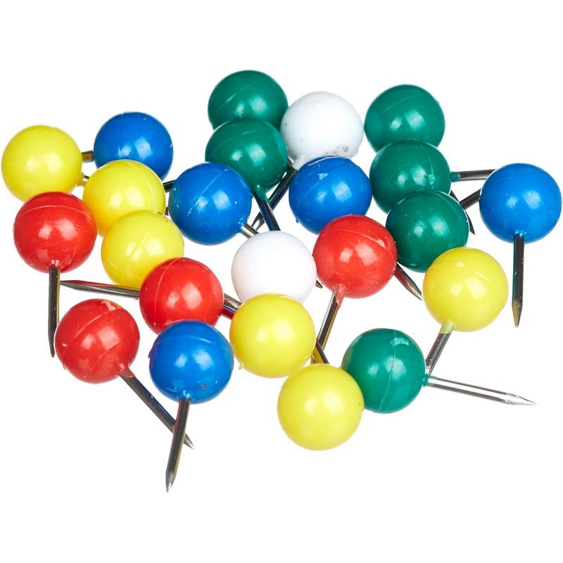Кнопки силовые Attache предназначены для крепления информации на текстильных и пробковых досках. Шляпки в форме шариков выполнены из пластика, а основания в виде иголок — из прочного металла. Длина кнопки с шариком — 19 мм, длина иглы без шарика — 11 мм. В упаковке содержится 50 кнопок с разноцветными шляпками (зеленый, белый, желтый, красный, синий). В коробке 24 упаковки.