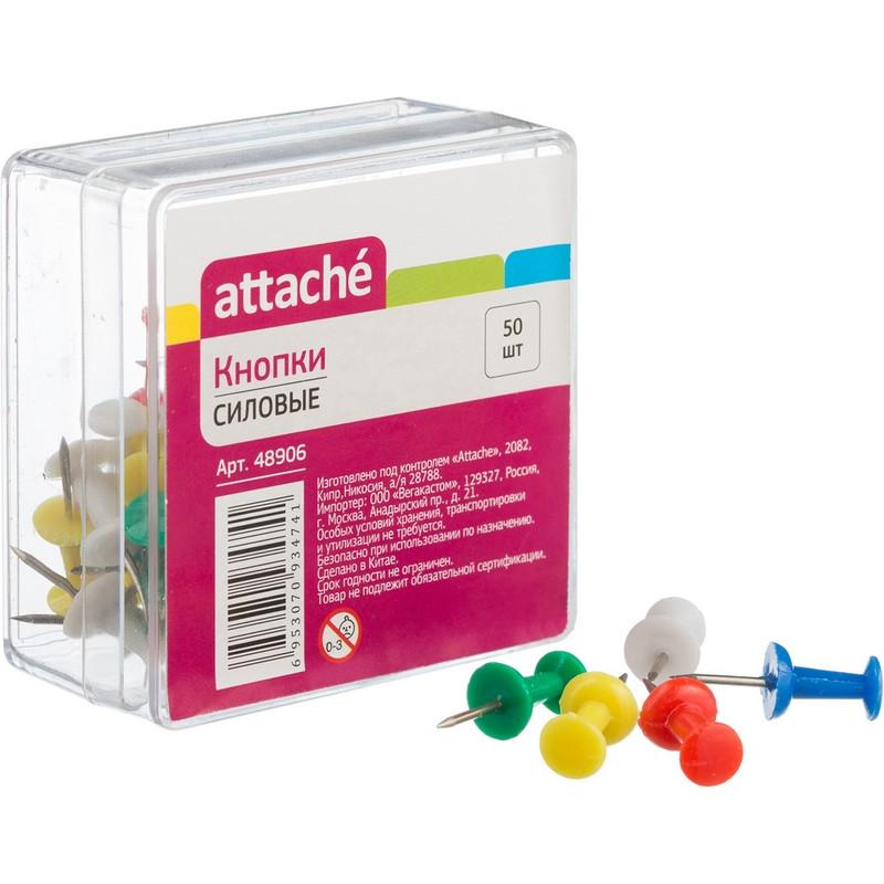 Кнопки силовые с пластиковым цветным держателем, Длина кнопки — 22.5, длина иглы — 12 мм.<br>Пластиковый бокс удобен для хранения и защищает от самопроизвольного высыпания кнопок. В коробке 50 штук кнопок силовых разного цвета. Используются для крепления информации к доскам пробкового типа, для планирования и отметок.