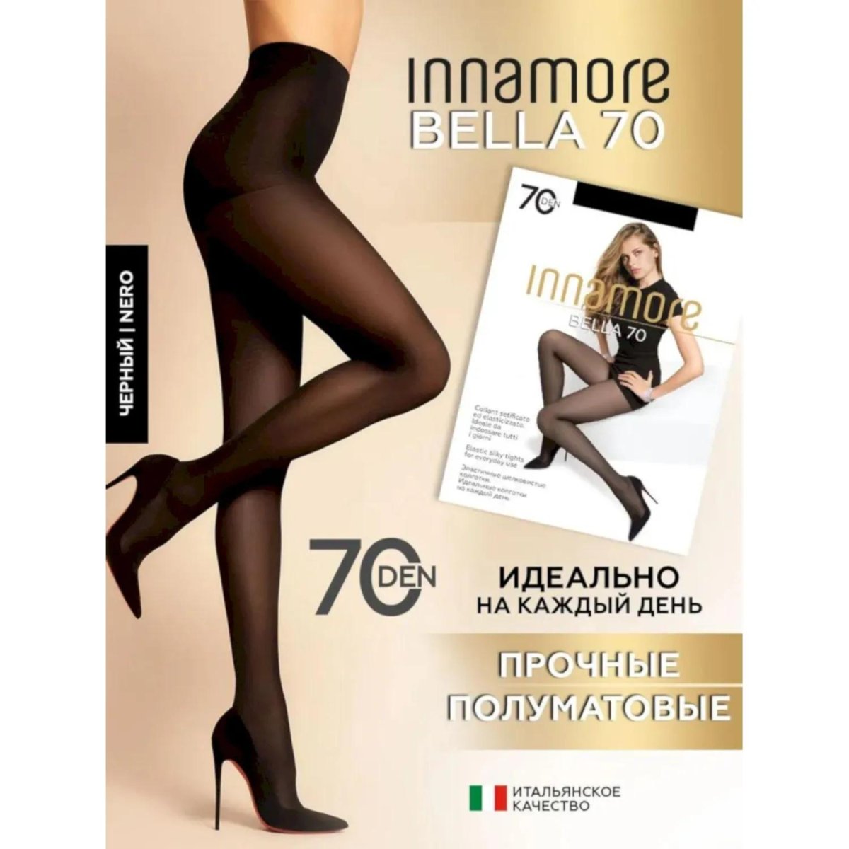 Колготки женские Innamore Bella 70 den — идеальные тёплые капроновые колготки на каждый день! Эластичные колготки без ластовицы, с комфортными шортиками на высокой посадке и прозрачным укреплённым мыском. Они станут прекрасным завершением любого вашего образа. Безупречные швы выполнены так, чтобы даже под тончайшими облегающими нарядами, не выделяются под одеждой. Модель выполнена с 1 швом сзади в любом размере. <br><br>Внешний вид и/или характеристики товара могут быть изменены производителем в соответствии с производственным процессом.