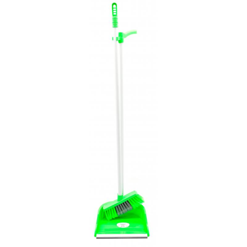 Готовый набор для уборки на базе компактной системы выполнен из качественных износостойких материалов. Цвет зеленый. Предназначен для сухой уборки малых помещений площадью до 100 кв.м, таких как офисы, кафе, магазины, спортклубы, салоны связи, салоны красоты, <nobr>мини-отели</nobr>, аптеки и другие объекты с невысокой проходимостью. Подходит для различных покрытий, включая паркет и ламинат. Компактный держатель облегчает уборку в труднодоступных местах.<BR>В состав набора входят щетка и совок.<BR><b>Щетка/метла</b><BR>Пластиковый черенок длиной 88 см с рукояткой. Мягкая щетина длиной 5 см. Длина основания — 18 см.<BR><b>Совок</b><BR>Размер — 25×18 см. Вставка на передней кромке обеспечивает полное и легкое заметание мусора.<BR><b>Вес комплекта:</b> 460 г.
