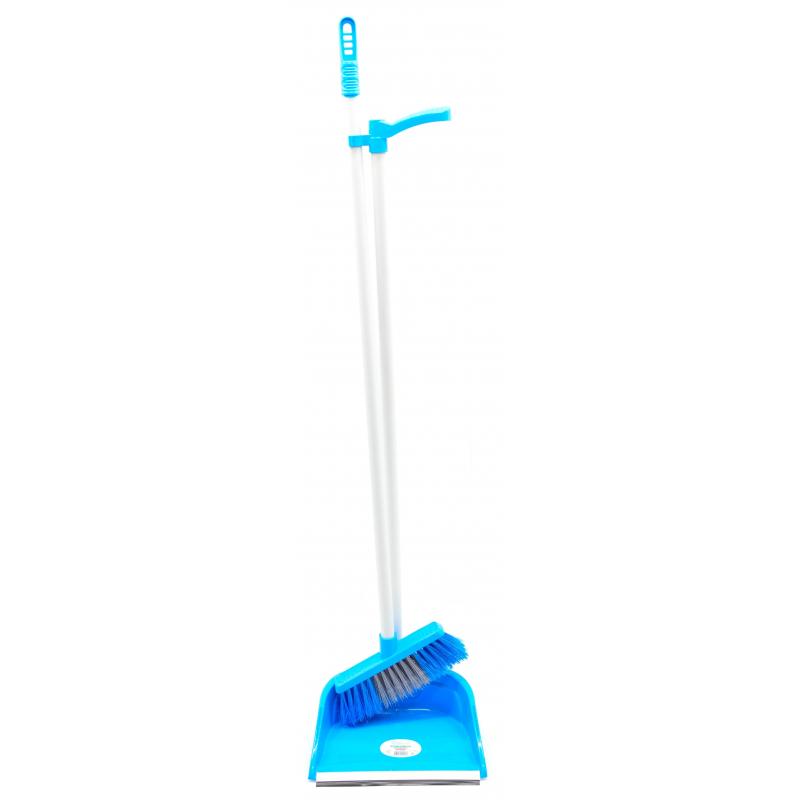 Готовый набор для уборки на базе компактной системы выполнен из качественных износостойких материалов. Цвет синий. Предназначен для сухой уборки малых помещений площадью до 100 кв.м, таких как офисы, кафе, магазины, спортклубы, салоны связи, салоны красоты, <nobr>мини-отели</nobr>, аптеки и другие объекты с невысокой проходимостью. Подходит для различных покрытий, включая паркет и ламинат. Компактный держатель облегчает уборку в труднодоступных местах.<BR>В состав набора входят щетка и совок.<BR><b>Щетка/метла</b><BR>Пластиковый черенок длиной 88 см с рукояткой. Мягкая щетина длиной 5 см. Длина основания — 18 см.<BR><b>Совок</b><BR>Размер — 25×18 см. Вставка на передней кромке обеспечивает полное и легкое заметание мусора.<BR><b>Вес комплекта:</b> 460 г.