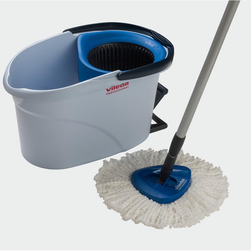 <b>Комплект для уборки Vileda Professional УльтраСпин Мини (швабра и ведро 10 л с отжимом) синий</b><br><br>Набор УльтраСпин Мини от Vileda Professional — это компактный набор с мопом из микроволокна для уборки на базе системы УльтраСпин в помещениях с площадью до 50 кв/м. Подходит для влажной уборки ежедневных загрязнений напольных покрытий, включая плитку, керамогранит, линолеум, ламинат методом «ведро-вода». Эргономичный вращающийся отжим с педалью без наклонов и боли в пояснице.<br><br><b>УльтраСпин Мини</b> — это простая в использовании компактная полупрофессиональная система для уборки для маленьких помещений. Система состоит из ведра с вращающимся педальным отжимом и швабры с телескопической ручкой и мопом из 100% микроволокна.<br><br><b>Что входит в набор:</b><br>Ведро с синим отжимом УльтраСпин Мини — 1 шт.<br>Держатель мопов УльтраСпин Мини синий — 1 шт.<br>Ручка телескопическая 84-144 см — 1 шт.<br>Моп УльтраСпин Мини 34 см — 1 шт.<br><br><b>Особенности и преимущества:</b><br>Компактный набор для уборки ежедневных загрязнений в небольших помещениях.<br>Эргономичный вращающийся отжим с педалью без наклонов и боли в пояснице.<br>Контроль влажности мопа с помощью педали. Чем больше нажатий — тем менее влажный моп.<br>Защита от брызг во время отжима.<br>Эффективная уборка с помощью микроволокна.<br>Моп можно стирать в стиральной машине.<br>Треугольная форма держателя мопа для лёгкой уборки углов.<br>Лёгкая, компактная и прочная система из высококачественных и прочных материалов для продолжительного срока службы.<br>Цветовая кодировка отжима и держателя мопа для маркировки инвентаря и исключения перекрёстных загрязнений.<br>Система не требует специального обучения персонала.<br>Продукт произведён в России.<br><br><b>Область применения:</b><br>Идеален для уборки коммерческой недвижимости, общественных помещений, пищевых производств и HoReCa.<br><br><b>Набор УльтраСпин Мини</b> — это высококачественный инструмент для эффективной, экологичной и профессиональной уборки.<br><br><b>Характеристики:</b><br>Вес брутто: 2,53 кг.<br>Страна производства: Россия.<br>Артикул производителя: 158010.