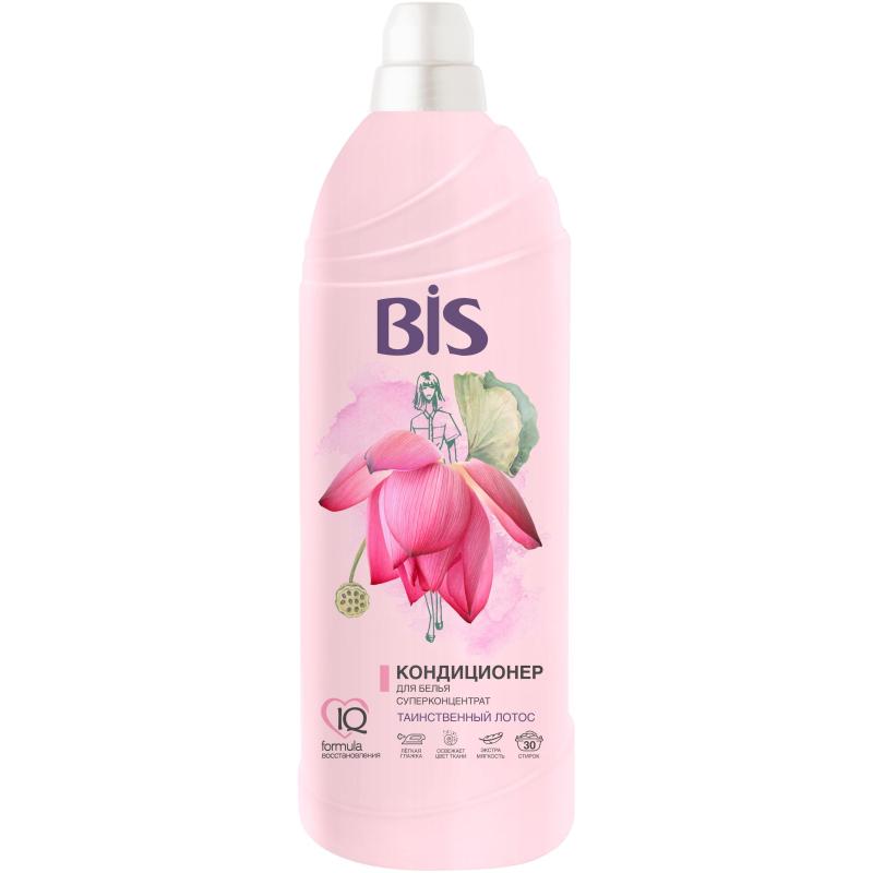Кондиционер для белья Bis Таинственный Лотос 900 мл.<br> <br> <b>Назначение:</b> BIS — универсальный ополаскиватель для белья, который обеспечивает максимальный уход и свежесть за вашей одеждой и бельём до 150 дней. Обладая концентрированной формулой, это жидкое средство эффективно работает со всеми видами тканей, придавая вашим вещам невероятную мягкость. Его антистатический эффект сделает глажку белья лёгкой и быстрой, придавая одежде роскошный вид и ощущение нежности. BIS помогает надолго продлить жизнь любимых вещей, а тонкие и деликатные ароматы, разработанные совместно с европейскими парфюмерами, превращают каждую стирку в приятное и вдохновляющее занятие.<br> Бренд BIS представлен в разных ароматах, даёт возможность выбрать кондиционер опираясь на собственные предпочтения. Цветочный водяной аромат «Таинственный лотос» — настоящее сокровище линейки BIS с нотами водяной прохлады и белого водяного лотоса, с мягкими оттенками тропических фруктов и нежных весенних цветов.<br> Ополаскиватель для белья БИС является универсальным решением, как для ручного применения, так и для автоматических стиральных машин (автомат) в воде любой жёсткости. Кондиционер BIS полностью выполаскивается, не оставляя разводов и следов. При его использовании ваша одежда приобретает приятный аромат, который долго сохраняется. Вам понадобится совсем небольшое количество ополаскивателя для достижения желаемого результата, что делает его экономичным и долговечным, 25 мл = 1 стирка.<br> <b>Способ применения:</b> Добавить кондиционер перед последним полосканием белья после стирки.<br> Для автоматических стиральных машин: добавить 25 мл (25 г) в отсек дозирующей кюветы, предназначенный для заключительной отделки (последнего полоскания).<br> Для ручной стирки: растворить 15 мл (15 г) в 10 л тёплой (25-30) °С воды. Выдержать изделие в растворе 20 минут. Объём колпачка ~ 40 мл.<br> <b>Меры предосторожности:</b> при попадании в глаза тщательно промыть обильным количеством воды. Беречь от детей! Используйте в соответствии с назначением.<br> <b>Состав:</b> ≥5%, но ≤15% КПАВ; ≤5% консервант, ароматизирующая добавка.<br> <b>Условия хранения:</b> хранить в тёмном прохладном месте в вертикальном положении, в недоступном для детей месте.<br> <b>Срок годности:</b> 1,5 года с даты изготовления (дату изготовления см. на упаковке).