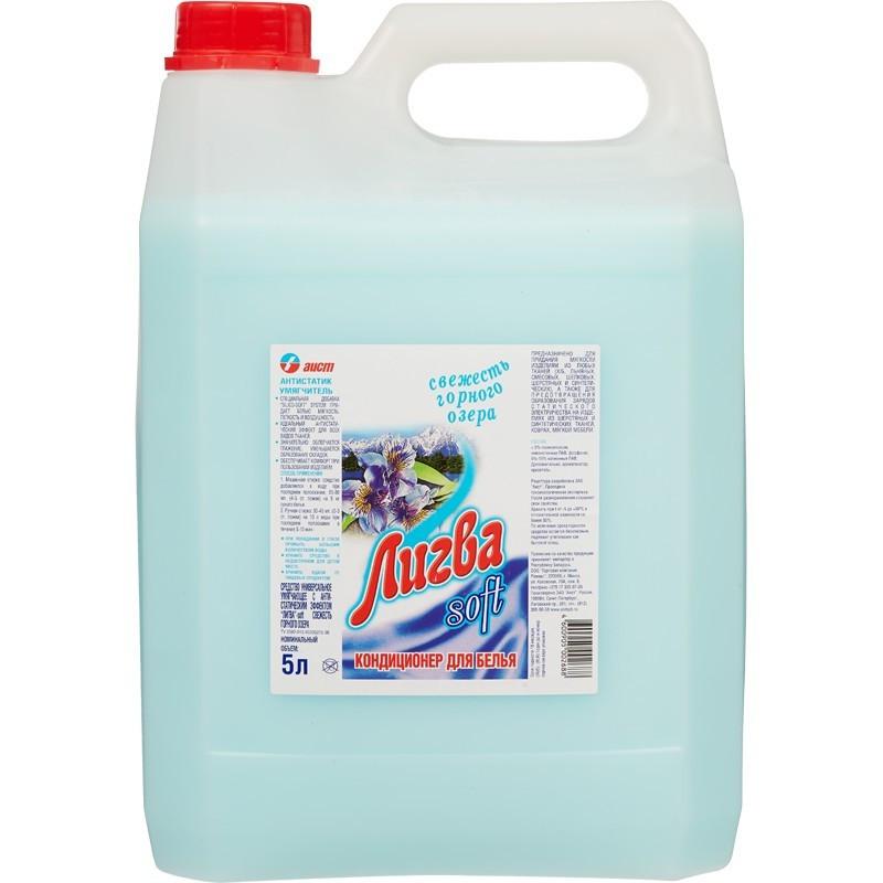 <p>Кондиционер для белья Лигва soft Свежесть горного озера 5 л<br><br><b>Назначение:</b><br />предназначенно для придания мягкости изделиям из любых тканей (хлопчатобумажных, льняных, смесовых, шелковых, шерстяных и синтетических), а также для предотвращения образования зарядов статического электричества на изделиях из шерстяных и синтетических тканей, коврах, мягкой мебели.<br /><b>Способ применения:</b><br />1 Машинная стирка Средство добавляется в воду при последнем полоскании 4–5 ст. ложек на 5 кг сухого белья. 2 Ручная стирка 2 — 3 ст. ложки на 10 литров воды при последнем полоскании в течение 5–10 минут<br /><b>Меры предосторожности:</b><br />Хранить вдали от пищевых продуктов; беречь от детей; в случае попадания средства в глаза немедленно промыть проточной водой.<br /><b>Состав:</b><br />< 5% полисилоксан, неионогенные ПАВ, фосфонат, ароматизатор, краситель; 5%-15% катионные ПАВ.<br /><b>Условия хранения:</b><br />хранить в крытых вентилируемых складских помещениях при температуре от минус 5°С до плюс 30°С и относительной влажности не более 95% и должны быть защищены от действия прямых солнечных лучей.<br /><b>Срок годности:</b><br />18 мес</p>
