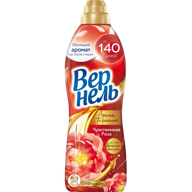 Если у Вас есть вопросы о кондиционерах для белья, обращайтесь по телефону Горячей линии 8-<nobr>800-2000-660</nobr>.<BR>Кондиционер для белья Vernel Чувственная роза 870 мл.<BR>Кондиционер для белья Vernel Ароматерапия также содержит в составе эфирные масла, которые подарят Вам вдохновение для души и тела.<BR>Преимущества:<BR>— концентрированный кондиционер для белья;<BR>— кондиционер для белья обеспечивает интенсивный аромат до 140 дней (при хранении белья без использования);<BR>— кондиционер содержит в составе эфирные масла, дарящие вдохновение для души и тела;<BR>— кондиционер для стирки придает приятный аромат и мягкость белью;<BR>— кондиционер для стирки облегчает глажку и обладает антистатическим эффектом;<BR>— дарит чувственный яркий аромат дикого гибискуса и нотами розы;<BR>— на одну стирку достаточно меньше половины колпачка.<BR>Подходит для всех видов тканей. Избегайте непосредственного контакта средства для стирки с тканью. Концентрированный ополаскиватель для белья Vernel просто использовать. Благодаря удобной <nobr>крышке-дозатору</nobr> Вы всегда будете знать, сколько ополаскивателя для белья необходимо добавить в отделение для кондиционера в стиральной машине или в воду во время последнего полоскания при ручной стирке. Концентрированного средства для стирки хватает на длительное время. Его не нужно разбавлять водой. Перед использованием рекомендуется взбалтывать. Информация по дозировке указана на обратной стороне упаковки средства для стирки. Бренд Vernel берет начало в 1969 г., когда своим появлением Vernel объявил войну жесткости сухого белья. Благодаря концентрированным ополаскивателям для белья Vernel, компания Henkel подарила своим потребителям невероятное ощущение мягкости вместе с удивительной свежестью и приятным ароматом. Ополаскиватель для белья Vernel представлен богатым спектром ароматов, среди которых потребители точно найдут вариант себе по душе.<BR>Vernel — аромат, в который хочется влюбиться. Пожалуйста, оставьте отзыв о cредстве для стирки Vernel Ароматерапия — Ваше мнение важно для нас!<BR>Состав: 5 — 15 % катионных ПАВ; < 5 % отдушки (<nobr>в т. ч.</nobr><nobr>альфа-изометилионона</nobr>, бензилсалицилата), консерванта.<BR>Срок годности: 24 месяца.
