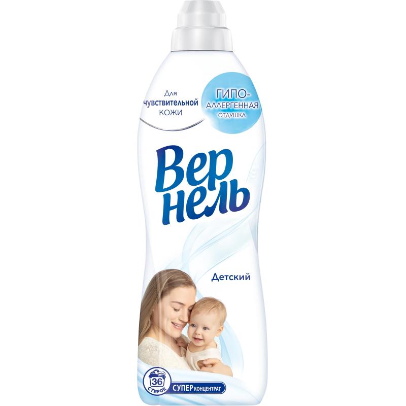 <b>Кондиционер для белья Вернель 910 мл.</b><br><b><br>Назначение:</b> Концентрированный кондиционер для белья. Разработан специально для стирки детского белья. Подходит для людей с чувствительной кожей и аллергиков, благодаря гипоаллергенной отдушке. Смягчает ткань, облегчает глажение, обладает антистатическим эффектом и придает вещам нежный аромат. Подходит для всех видов тканей. Качество проверено ECARF. На одну стирку достаточно меньше половины колпачка. <b><br>Способ применения:</b> Перед использованием рекомендуется взбалтывать. Дозировать при помощи колпачка (см. на этикетке продукта). При стирке в стиральной машине добавить в отделение для кондиционера. При ручной стирке добавить в воду во время последнего полоскания.<b><br>Меры предосторожности:</b> Осторожно. При попадании в глаза вызывает раздражение. После использования тщательно вымыть руки. ПРИ ПОПАДАНИИ В ГЛАЗА. Осторожно промыть глаза в течение нескольких минут. Если раздражение не проходит, обратиться за медицинской помощью. Беречь от детей! <b><br>Состав:</b> 5-15 % катионных ПАВ; < 5 % отдушки, консерванта. <b><br>Условия хранения:</b> Хранить при температуре от +5 до +35°С. <b><br>Срок годности:</b> 24 месяца с даты изготовления (см. на упаковке).