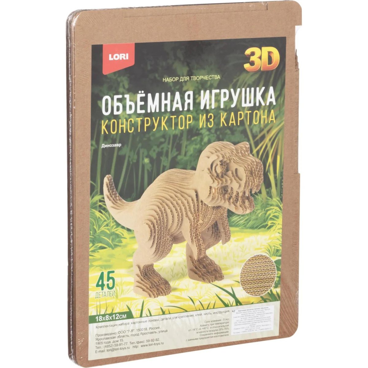 Конструктор картонный Lori Объёмная игрушка Динозавр 45 деталей<br><br>Конструктор из картона «Динозавр» предназначен для сборки объёмной игрушки. Он развивает у ребёнка воображение, мелкую моторику и пространственное мышление. Игрушка собирается из деталей по простой инструкции, что делает процесс увлекательным и доступным даже для начинающих.<br><br>В набор входит 45 элементов из микрогофрокартона. Материал лёгкий, прочный и экологически чистый, что позволяет использовать готовую фигурку как в сюжетно-ролевых играх, так и в качестве украшения комнаты. Конструктор подходит для детей от 5 лет.