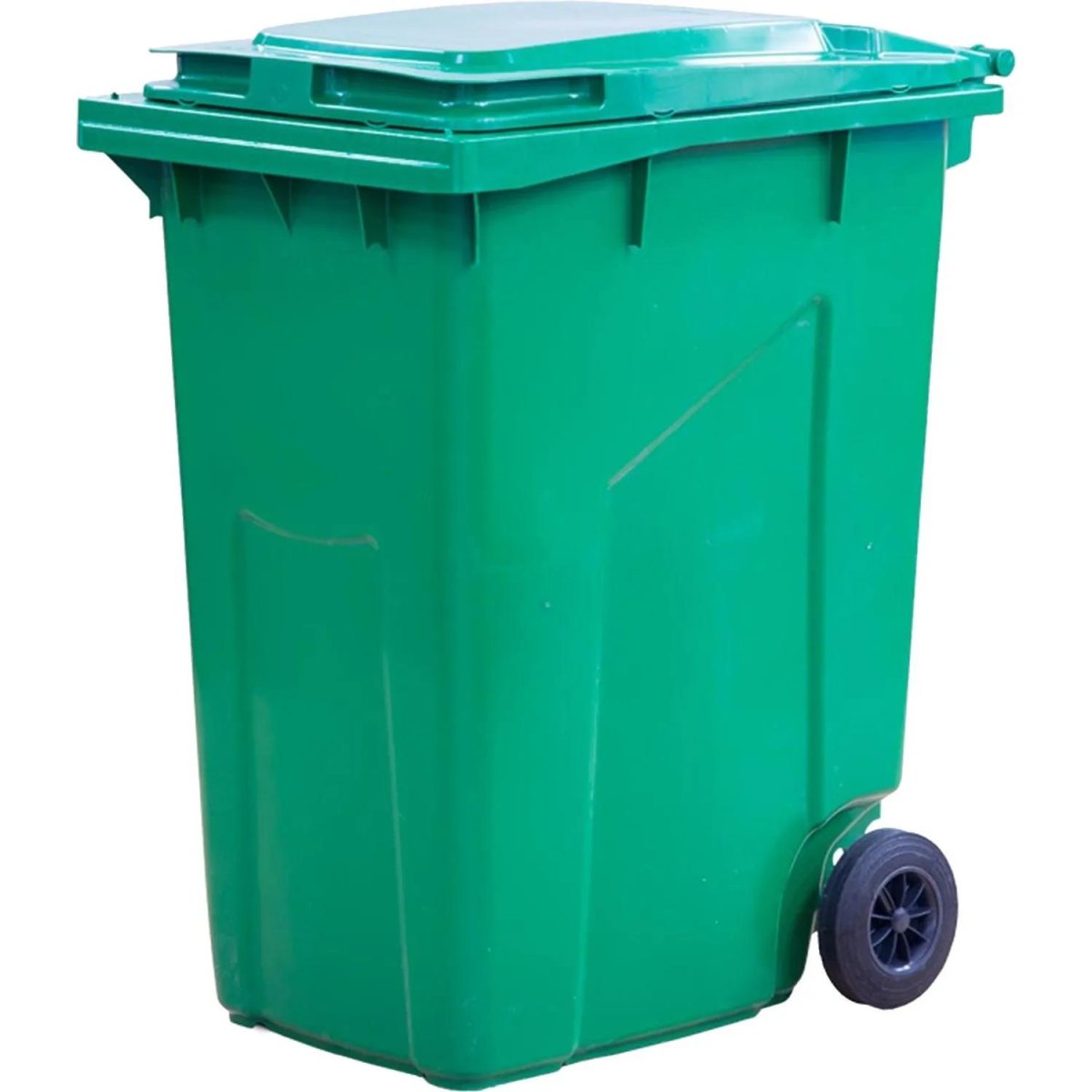 Контейнер-бак мусорный 360 л на колёсах с крышкой пластик зелёный (111×60.5×93.5 см)<br><br>Передвижной мусорный контейнер обладает значительным объёмом для хранения бытовых и промышленных отходов. Два больших прорезиненных колеса диаметром 200 мм обеспечивают мобильность изделия, а прочный пластик гарантирует длительный период использования и значительную нагрузку. Контейнер оснащён герметичной крышкой, диаметром 91×57 см, что исключает распространение запахов. Подходит для раздельного сбора мусора. Контейнер оснащён усиленной передней гребёнкой для работы с мусоровывозящей техникой. Есть ручки.<br><br>Изготовлен из полиэтилена высокой плотности низкого давления (HDPE). <br><b>Используемый материал характеризуется:</b> лёгкостью, высокой прочностью, устойчивостью к выцветанию, к воздействию агрессивных химических веществ, к перепадам температур; возможно использование при низких и высоких температурах (от 40 до 60 °С).<br><b>Высота контейнера-бака:</b> 111 см (с крышкой), 107 см (без крышки).<br><b>Размер по верхней кромке:</b> 93.5×60.5 см.<br><b>Размер дна:</b> 43×54 см.<br><b>Размер крышки:</b> 88×57 см.<br><b>Цвет:</b> зелёный. Оттенок цвета может отличаться в зависимости от партии товара.<br><b>Вес:</b> 14.6 кг.<br><br>Внимание! Поставляется в разобранном виде.<br><br>Внимание: в характеристике «Объём рекомендуемого мешка» указан минимальный объём мешка, который подойдёт для изделия. Рекомендуется приобретать мешки указанного, либо большего объёма.