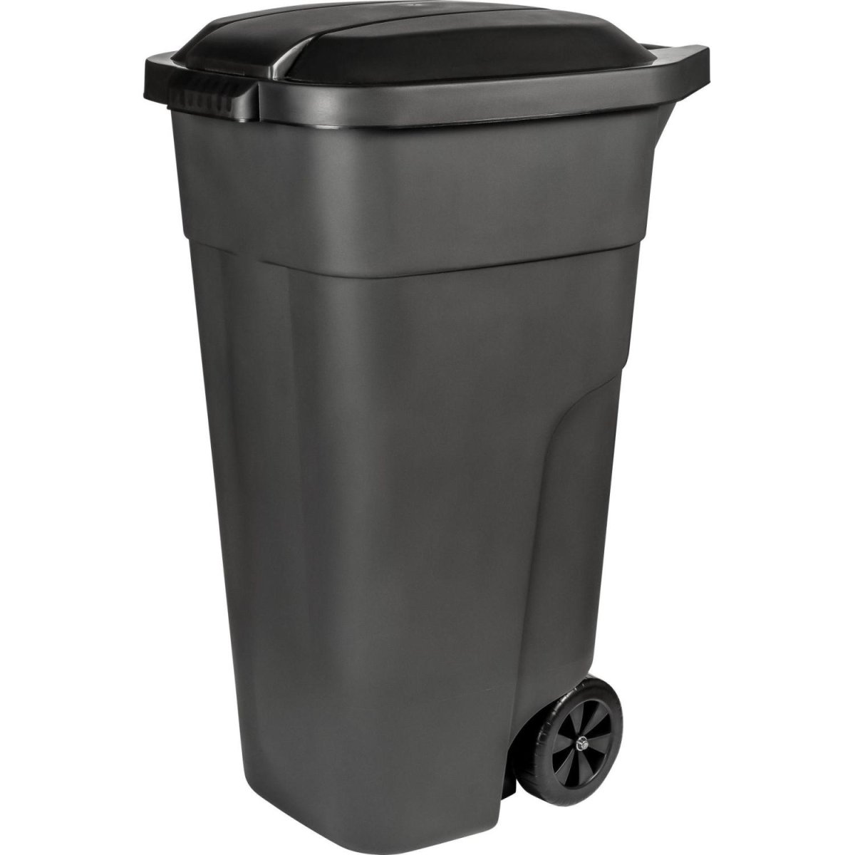 Контейнер-бак мусорный Plast Team 110 л на колёсах с крышкой пластик серый (84×54.5×54.5 см)<br><br>Контейнер-бак для мусора с крышкой на колёсах 110 л имеет прочный корпус, благодаря грамотной конструкции и добавлению в состав ударопрочного сырья. Вместительный объём 110 л позволит реже вывозить мусор. Откидная крышка удобна в использовании.<br>Колёса имеют 2 положения: в первом, вы можете перемещать бак, во втором, бак устойчиво стоит на плоской поверхности.<br><br>Материал, из которого изготовлен бак, устойчив к перепадам температур — это особенно актуально при использовании в разных погодных условиях. Температурный режим: от −30 до +50 °С.<br><b>Размеры (ГxШxВ):</b> 51.5×54.5×84 см.<br><b>Высота с учётом закрытой крышки:</b> 84 см.<br><b>Высота без крышки:</b> — 80.5 см.<br><b>Размер дна</b> 33×36 см.<br><b>Ширина с учётом ручек и/или других выступающих элементов:</b> 52.5 см.<br><br>Внимание: в характеристике «Объём подходящего мешка» указан минимальный объём мешка, который подойдёт для изделия. Рекомендуется приобретать мешки указанного, либо большего объёма.<br><br>Внимание: поставляется в разобранном виде.