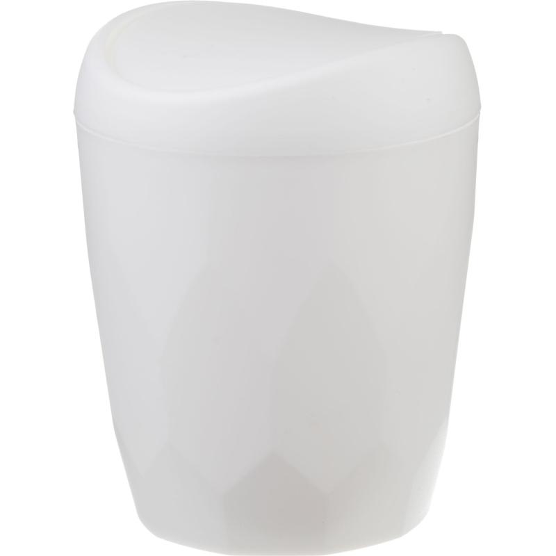 Контейнер для мусора Keeplex Light 1 л пластик с крышкой белый (14.6×11×11 см)<br><br>Контейнер для мусора Keeplex Light 1 л — практичное и стильное решение для дома. Миниатюрный контейнер разработан для поддержания чистоты в ванной комнате, на рабочем столе и на кухне. Поворотная крышка-маятник легко открывается простым нажатием руки. Для удобства извлечения накопившегося мусора верхняя часть контейнера сделана съёмной. Сделан из прочного, лёгкого пластика. Матовое soft-touch покрытие создаёт приятные тактильные и визуальные эффекты. Входит в коллекцию бренда Keeplex «Light», что позволяет подобрать аксессуары для ванной комнаты в едином стиле. Оригинальный ромбовидный узор добавляет элегантности и современности в интерьер ванной комнаты. Объём — 1 л.