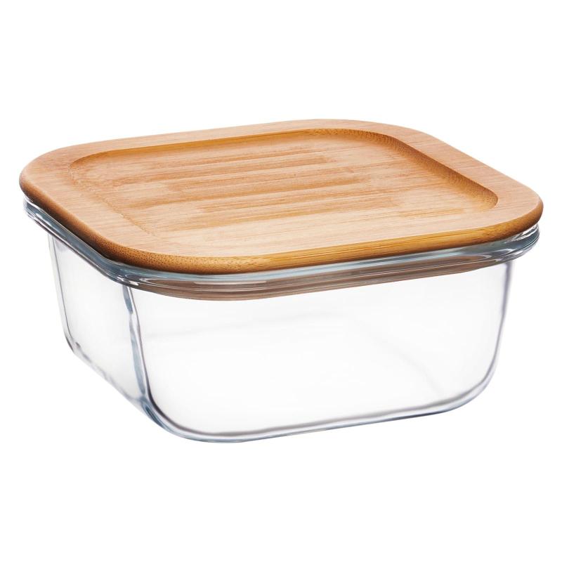 Контейнер 520 мл изготовлен из жаропрочного боросиликатного стекла. Подходит для приготовления и разогрева пищи в духовом шкафу и <nobr>СВЧ-печи</nobr> (использовать без крышки). Подходит для хранения в морозильной камере. Крышка из натурального бамбука с силиконовым уплотнителем. Не вступает в реакцию с продуктами, не меняет цвет и не впитывает запахи. Легко мыть. Можно использовать в посудомоечной машине (мыть без крышки). <BR>Размер: 13. 5×13. 5×6 см.