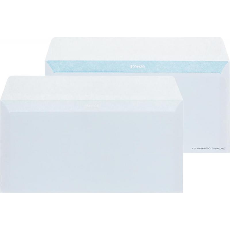 Конверт Комус E65 80 г/кв.м белый стрип с внутренней запечаткой размером 110×220 мм выполнен из высококачественного офсета 80 г/кв.м, имеет клеевое нанесение типа стрип (отрывная силиконовая лента). Ширина клапана 15 мм.<br><br>Предназначены для пересылки 6 листов А4 формата, сложенных втрое, что равно 30 г веса. Упакован в короба по 1000 штук.<br><br>Срок годности не ограничен. Показатель белизны бумаги — 143-149%.