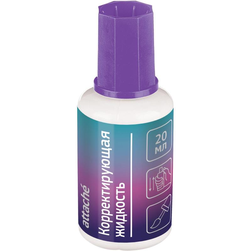 Корректирующая жидкость Attache применяется для корректировки всех типов документов, включая бумагу для факсов. Ложится ровным гладким слоем, создает непрозрачное покрытие. Имеет быстросохнущую основу. Вид кисточки — ворс. Объем флакона с корректирующей жидкостью составляет 20 мл.<br> <br> 1. Перед применением тщательно встряхните средство, затем снимите колпачок. Опустите кисть (аппликатор) во флакон и затем аккуратно выньте ее. При необходимости сотрите излишки корректирующей жидкости о внутреннюю сторону горлышка флакона, а не его край. Это позволит избежать присыхания жидкости.<br> 2. Равномерно нанесите средство на бумагу.<br> 3. После применения плотно закройте колпачок.<br> Перед использованием обязательно тщательно встряхнуть несколько раз.<br> Для максимального эффекта использовать нанесение в несколько слоев.