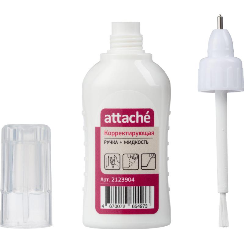 Корректирующая ручка-жидкость Attache 2 в 1 металлический наконечник и кисточка на быстросохнущей основе 12 мл (морозостойкая)<br><br>Корректирующая ручка-жидкость Attache 2в1 предназначена для точных и аккуратных исправлений текста на любых типах бумаги. Благодаря универсальной конструкции с двумя типами наконечников инструмент подходит как для точечной корректировки, так и для закрашивания более крупных участков. Металлический наконечник обеспечивает чёткое нанесение тонких линий шириной до 2 мм, а мягкая кисточка с ворсом позволяет равномерно распределить жидкость на нужной площади.<br><br>Формула на основе быстросохнущей жидкости обеспечивает высокую кроющую способность: корректор ложится плотным белым слоем, не оставляя разводов и не деформируя бумагу. Это особенно удобно для исправления отдельных букв или слов, а также при повторном нанесении текста на корректированный участок. Средство не требует длительного ожидания между нанесением и повторным письмом.<br><br>Ручка устойчива к замерзанию — жидкость не теряет своих свойств при низких температурах, что делает изделие пригодным для использования и хранения в условиях пониженной температуры. Удобный формат флакона позволяет брать его с собой в пенале или канцелярском органайзере. Перед использованием рекомендуется несколько раз встряхнуть корпус — встроенный металлический шарик обеспечит равномерное перемешивание содержимого.