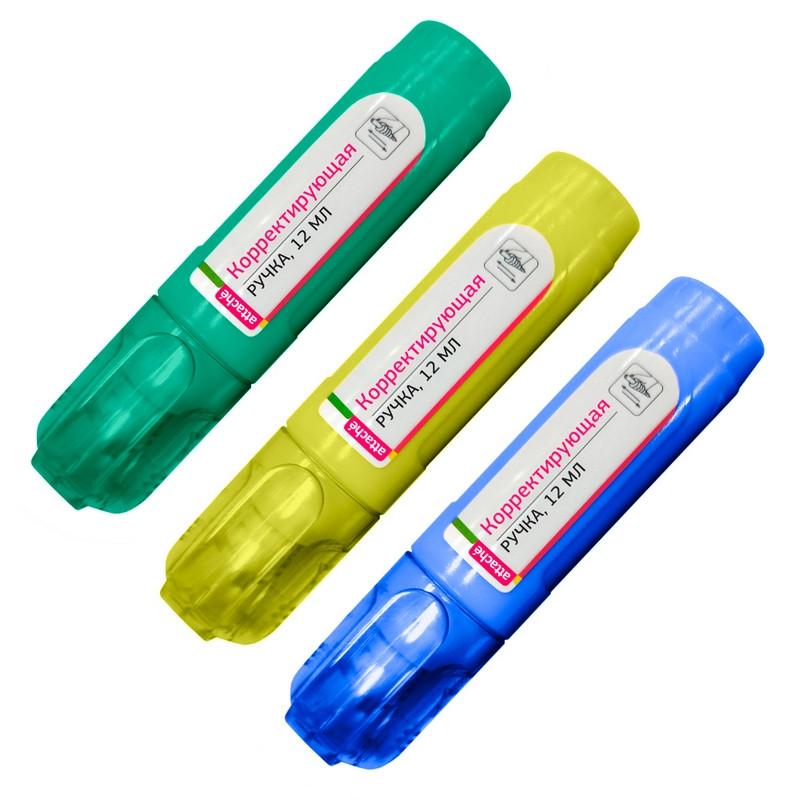 Корректирующий карандаш Attache предназначен для точечных исправлений на любых типах бумаги. Данный вид корректировки особенно удобен, если Вам нужно исправить небольшой объем текста или даже самую маленькую помарку. Идеально подходит для студентов и старших школьников. Объем флакона - 12 мл. Металлический наконечник позволяет наносить тонкие линии. Содержит быстросохнущую основу, обладает высокой кроющей способностью. Внимание! Товар поставляется в нескольких вариантах цвета корпуса (без возможности выбора). 1. Перед применением тщательно встряхните средство в течение не менее 10 секунд, затем снимите колпачок.2. Прижмите наконечник ручки к поверхности бумаги.3. Нажмите на корпус ручки для подачи корректирующего средства и равномерно нанесите его на бумагу.4. После применения плотно закройте колпачок.
