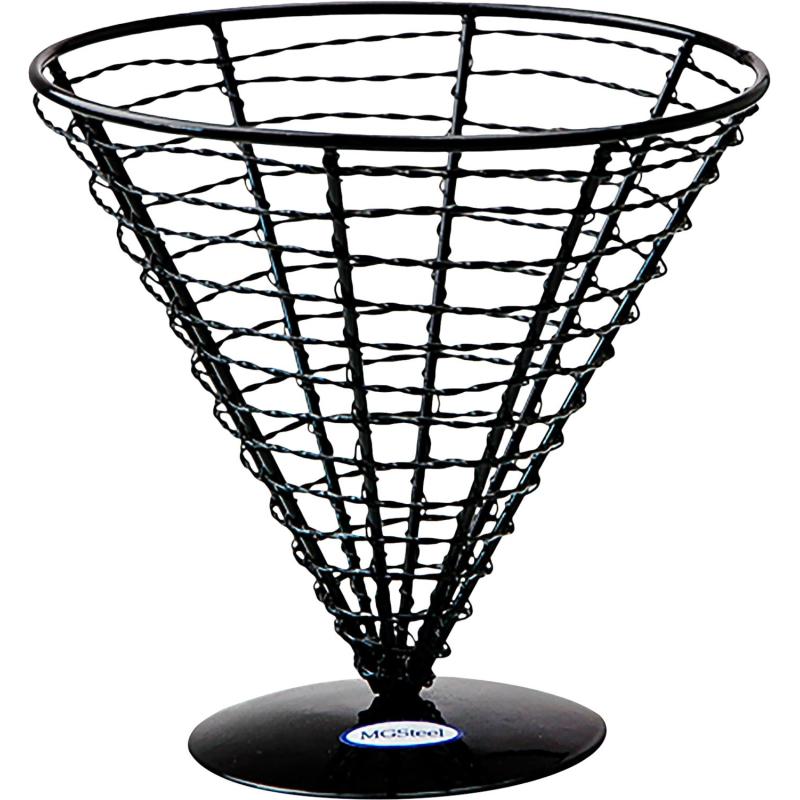 Корзина для подачи MGSteel кованое железо 18×18×17.5 см (73873)<br><br>Корзинка предназначена для подачи блюд в заведениях общественного питания. Коническая форма и прочная конструкция делают изделие удобным в использовании. Корзинка выполнена из кованого железа, устойчивого к деформациям, механическим нагрузкам и перепадам температур. Размер составляет 175×180×175 мм. Крышка не предусмотрена. Модель представлена в чёрном цвете и рассчитана на ручную очистку.