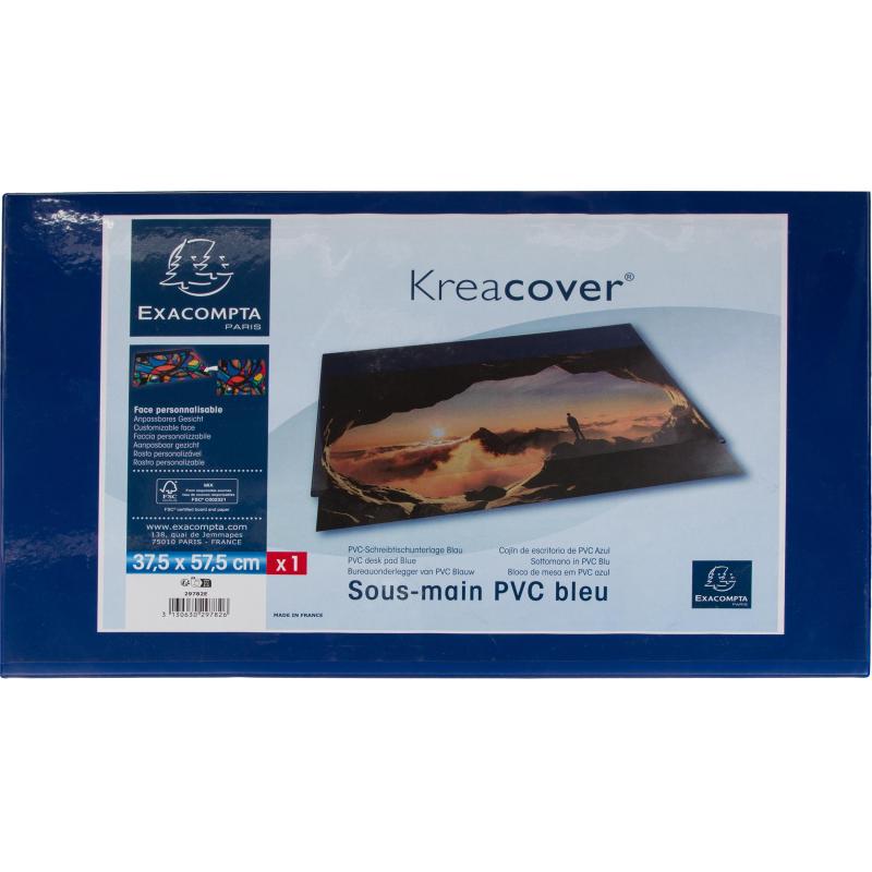<p>Коврик на стол Exacompta 57.5×37.5 см синий с прозрачным листом. Изготовлен из гибкого, но толстого ПВХ, прочный и не скользит, устойчив к пятнам чернил, воде, царапинам и очень прост в уходе. Идеально подходит для домашнего, офисного и профессионального использования.</p>