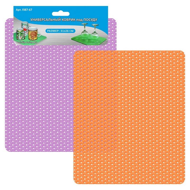 Коврик универсальный под посуду Мультидом ПВХ 310×260 мм в ассортименте (артикул производителя 87. 67). <BR>Коврик изготовлен из вспененного поливинилхлорида пористой структуры. <BR>ПВХ коврики позволят:<BR>— бережно просушить стаканы, фужеры, кружки и другую посуду;<BR>— защитят поверхность стола и мойки от царапин;<BR>— практичны и гигиеничны. <BR><BR>ПРЕДУПРЕЖДЕНИЕ! Нельзя ставить на коврик горячие предметы.