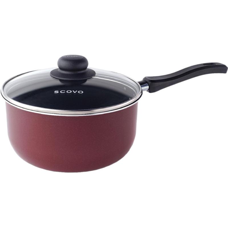 Ковш Scovo СЭ-003 2 л алюминий с крышкой<br><br>Ковш объёмом 2 л изготовлен из штампованного алюминия и подойдёт для варки, разогрева и приготовления соусов. Алюминий с толщиной стенок и дна 1.8 мм быстро нагревается и равномерно распределяет тепло. Диаметр ковша — 18 см, высота — 9 см, вес — 756 г.<br><br>Внутреннее тефлоновое покрытие предотвращает пригорание и облегчает уход. Снаружи нанесено жаростойкое лаковое покрытие бордового цвета, которое сохраняет внешний вид даже при частом использовании.<br><br>Ковш комплектуется стеклянной крышкой с бакелитовой ручкой. Основная ручка тоже выполнена из бакелита — она не нагревается и остаётся комфортной на ощупь. Изделие можно мыть в посудомоечной машине. Совместимо с газовыми, электрическими и комбинированными плитами, кроме индукционных.<br><br>Перед первым использованием ковш следует тщательно вымыть. Производится в России.