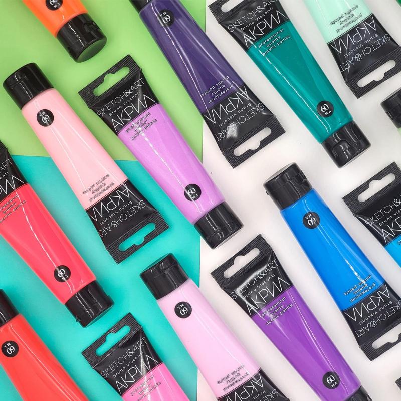 Краска акриловая Bruno Visconti розовая 60 мл в тубе флуоресцентная<br> <br> Флуоресцентная акриловая краска поставляется в пластиковом тюбике объёмом 60 мл. Предназначена для художественных и оформительских работ по различным поверхностям: бумага, картон, дерево, холст, керамика, бетон и прочим материалам. Отличается яркой светящейся окраской, высокой кроющей способностью, устойчивостью к воздействию атмосферных факторов, сохраняет насыщенность цвета. Подходит как для самостоятельного использования, так и при смешивании с другими видами акриловых красок.