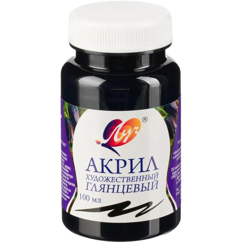 <br><br>Краска акриловая Луч чёрный 100 мл в пластиковой банке глянцевая<br><br>Акриловая краска используется для художественного и декоративного оформления различных поверхностей — от бумаги и холста до дерева, металла и кожи. Состав даёт плотное глянцевое покрытие чёрного цвета и после высыхания образует прочную, эластичную и несмываемую плёнку. Краска хорошо ложится, устойчива к выцветанию и подходит для нанесения ровных слоёв.<br><br>В жидком виде разбавляется водой, что удобно при создании различных техник и эффектов. Упакована в пластиковую баночку объёмом 100 мл с винтовой крышкой, обеспечивающей герметичность и защиту от высыхания. Рекомендуется хранить краску при температуре от 0 до +35°C, избегая воздействия солнечных лучей и близости к приборам отопления.
