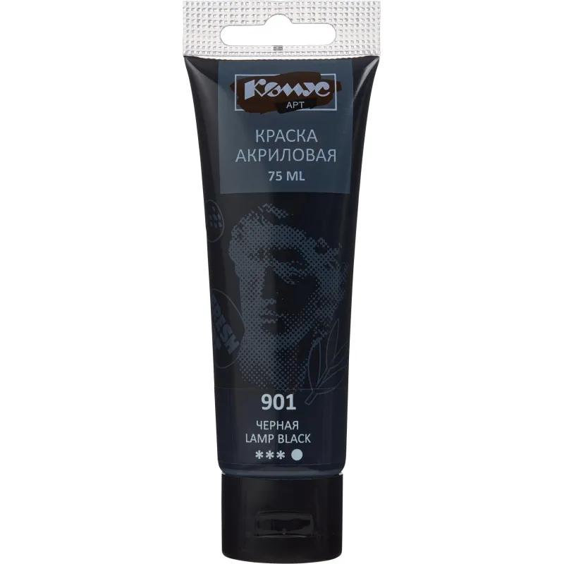 Краска акриловая Комус Арт черная 75 мл в тубе<br /> <br /> Акриловая краска Комус Арт предназначена для художественных работ: она подходит как для профессионалов, так и для начинающих художников. Может использоваться на различных поверхностях — таких как бумага, картон, дерево или холст. Краска обладает отличной укрывистостью и хорошей адгезией. Она быстро сохнет и не теряет насыщенности цвета длительное время. Краска представлена в одном цвете — черном (901). Упаковка выполнена в форме тубы — оптимальная емкость для дозирования и хранения (поставляется без кисточки). Покупая краску Комус Арт, вы получаете высококачественный и удобный в использовании материал по доступной цене — для занятий живописью любого уровня.