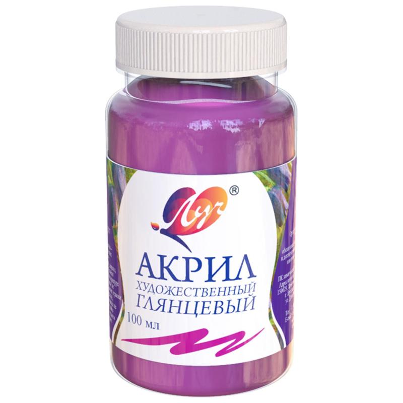 Краска акриловая Луч розовая 100 мл в пластиковой банке глянцевая<br> <br> Глянцевая акриловая краска Луч розовая предназначена для художественных, декоративных и дизайнерских работ. Она легко разбавляется водой, как акварельные краски, но после высыхания образует прочную несмываемую пленку. Красочный слой остается эластичным, прочным и долговечным, устойчивым к воздействию внешних факторов.<br> Краска подходит для работы на различных поверхностях, включая бумагу, картон, грунтованный холст, дерево, металл, кожу и другие материалы. Благодаря ультрамодному яркому бирюзовому оттенку она идеально подходит как для свободной росписи, так и для художественного декорирования с применением трафаретов.<br> Густая консистенция препятствует растеканию, обеспечивая равномерное распределение плотным слоем. После высыхания краска создает прочную глянцевую поверхность, устойчивую к загрязнениям и влаге. Удобная герметичная баночка предотвращает высыхание состава, а крышка легко открывается и плотно закрывается, сохраняя свежесть краски.