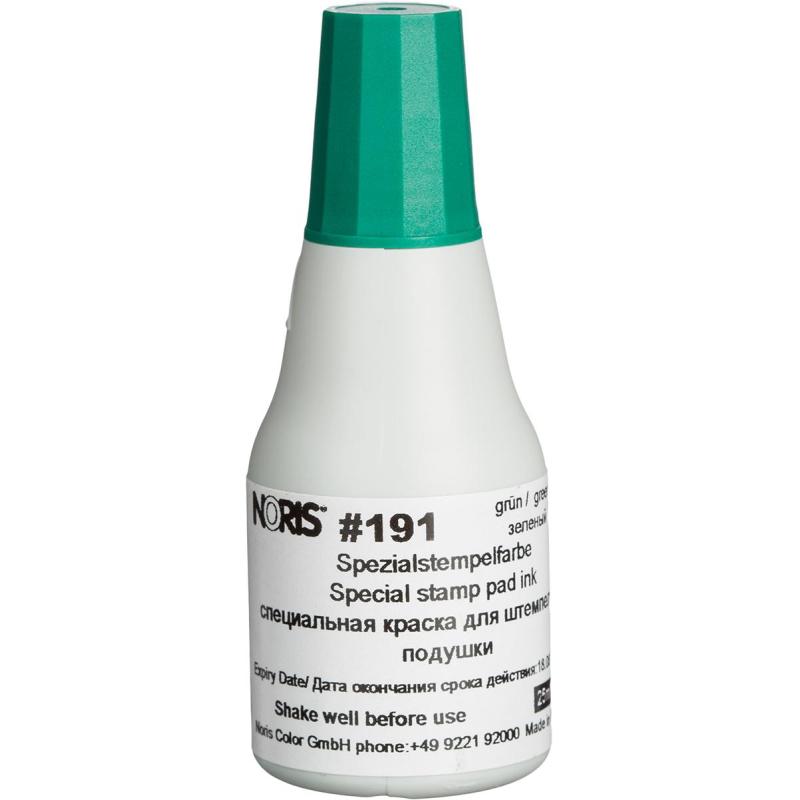 Специальная универсальная штемпельная краска на водной основе с содержанием спирта. Не смывается водой. Используется для нанесения на непористые поверхности (кроме полиэтилена, полипропилена): глянцевую бумагу, картон, олово, свинец, железо, медь, платину, электронику, твердый пластик, дерево, фанеру, синтетическую ткань, целлофан, черепицу, кирпич, бетон, керамику, фарфор, эмаль, стиропор, стекло, CD диски и другие.<br>Время высыхания — на бумаге 5 секунд, на дереве 100 секунд, на пластике 200 секунд, на ткани 240 секунд, на металле 300 секунд.<br>Цвет — зеленый.<br>Объем — 25 г.<br>Срок хранения 3 года. Выдерживает температуру от −50 до +50 градусов.<br>Производитель рекомендует использовать спиртосодержащую краску с ручными печатями и штампами и настольными подушками. Для предотвращения преждевременного высыхания, деформации штемпельного материала, экономии расхода рекомендуется использовать только штемпельные подушки со специальным слоем для спиртосодержащих красок (артикул 1281778) или универсальным слоем (артикул 218953, 868546, 1415862).<br>Внимание! При необходимости проставления оттисков спиртсодержащей краской при помощи автоматической оснастки, стандартную сменную подушку, идущую в комплекте, необходимо заменить на специальную совместимую со спиртосодержащими красками, во избежание затвердевания/деформации подушечного материала. Заказывается отдельно.
