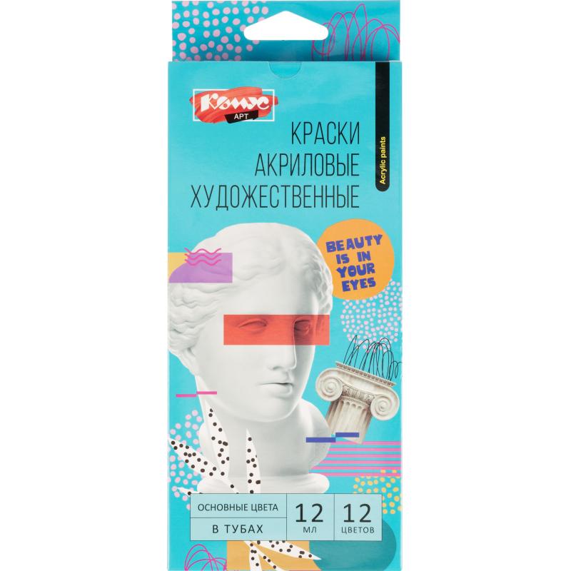 Краски акриловые Комус Арт Студия набор 12 цветов по 12 мл в тубах<br><br>Набор акриловых красок «Комус Арт» включает 12 цветов в тубах объемом 12 мл каждая. Данный комплект не содержит каких-либо специальных эффектов и предназначен для широкого спектра художественных техник.<br><br>Акриловые краски «Комус Арт» отличаются высокой пигментацией, что позволяет получать насыщенные и глубокие цвета. Они быстро высыхают, не требуют разбавления водой и обеспечивают отличную укрывистость. Краски легко наносятся на разнообразные поверхности, включая холст, бумагу, картон, дерево и ткани. Их можно использовать как в прозрачных, так и в плотных техниках живописи.<br><br>Набор рассчитан как на начинающих, так и на опытных художников. Он подходит для творческих занятий, художественных уроков, а также для любителей рукоделия и декорирования. Комплект поставляется без кисти, позволяя покупателю выбрать необходимые инструменты отдельно.<br><br>Акриловые краски «Комус Арт» произведены в Китае. Доступная цена при сохранении высокого качества делает данный набор отличным выбором для тех, кто хочет освоить акриловую живопись или дополнить свою коллекцию художественных материалов.<br><br>Цвета в наборе:<br>Titanium White (Титановый белый № 101)<br>Lemon Yellow (Лимонный жёлтый № 311)<br>Yellow Ochre (Жёлтая охра № 319)<br>Vermilion (Яркий красно-оранжевый № 204)<br>Crimson Red (Малиново-красный № 207)<br>Ultramarine (Ультрамарин № 536)<br>Phthalo Blue (Фталоидный синий № 537)<br>Emerald Green (Изумрудный зелёный № 424)<br>Sap Green (Глубокий земляной зелёный цвет № 425)<br>Burnt Sienna (Жжёная сиена № 752)<br>Burnt Umber (Жжёная умбра № 862)<br>Lamp Black (Чёрная сажа № 901)