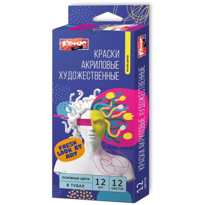 Набор акриловых красок «Комус Арт» включает 12 цветов в тубах по 12 мл. Краски не содержат специальных эффектов и предназначены для широкого круга художественных техник.<br><br>Акриловые краски отличаются высокой пигментацией, обеспечивая насыщенные и глубокие цвета. Они быстро сохнут, не требуют разбавления водой и демонстрируют отличную укрывистость. Краски легко наносятся на различные поверхности, включая холст, бумагу, картон, дерево и ткани. Их можно использовать как в прозрачных, так и в плотных техниках живописи.<br><br>Набор подходит как для начинающих, так и для опытных художников. Отлично подходит для творческих занятий, художественных уроков, а также для любителей рукоделия и декорирования. Комплект поставляется без кисти, позволяя покупателю выбрать необходимые инструменты отдельно.<br><br>Акриловые краски «Комус Арт» произведены в Китае. Доступная цена при сохранении высокого качества делает данный набор отличным выбором для тех, кто хочет освоить акриловую живопись или дополнить свою коллекцию художественных материалов.<br><br>Цвета в наборе:<br>Titanium White (Титановый белый № 101)<br>Lemon Yellow (Лимонный жёлтый № 311)<br>Yellow Ochre (Жёлтая охра № 319)<br>Vermilion (Яркий красно-оранжевый № 204)<br>Crimson Red (Малиново-красный № 207)<br>Ultramarine (Ультрамарин № 536)<br>Phthalo Blue (Фталоидный синий № 537)<br>Emerald Green (Изумрудный зелёный № 424)<br>Sap Green (Глубокий земляной зелёный цвет № 425)<br>Burnt Sienna (Жжёная сиена № 752)<br>Burnt Umber (Жжёная умбра № 862)<br>Lamp Black (Чёрная сажа № 901)