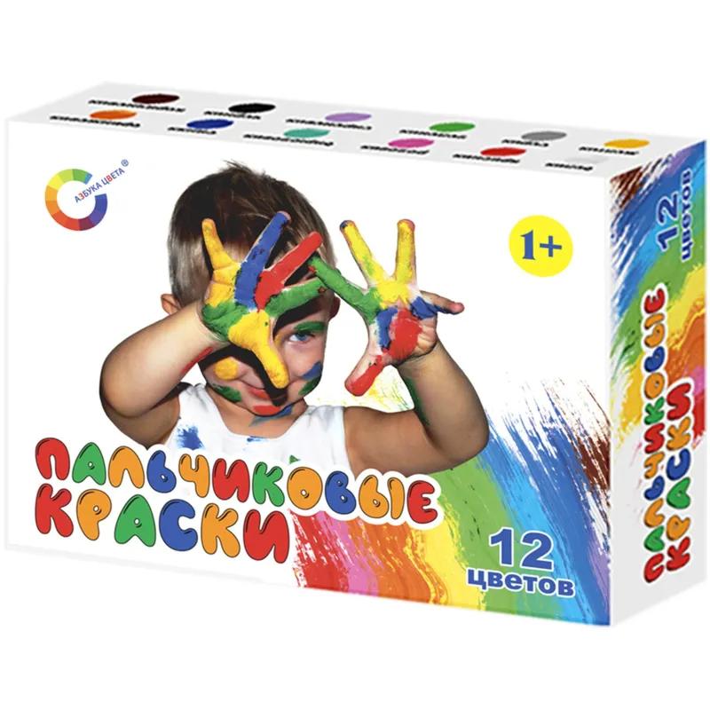 Краски пальчиковые Азбука цвета 12 цветов по 20 мл<br><br>Пальчиковые краски предназначены для детей от 1 года и подходят для первых занятий творчеством. В набор входит 12 классических цветов: сиреневый, оранжевый, розовый, бирюзовый, серый, коричневый, синий, красный, белый, зелёный, жёлтый и чёрный. Каждый оттенок легко смешивается с другими, позволяя ребёнку получать новые цвета и развивать воображение.<br><br>Краски изготовлены из безопасных ингредиентов: декстрина, пищевых пигментов, минерального масла, глицерина, пищевого консерванта и воды. Они сертифицированы в соответствии с ТР ТС 008/2011 «О безопасности игрушек», не имеют химического запаха и легко смываются с кожи и тканей.<br><br>Игры с красками способствуют развитию мелкой и общей моторики. Использовать их можно не только пальцами, но и с губками, валиками или трафаретами. Краски обладают густой однородной консистенцией и не вытекают из пластиковых баночек даже при случайном опрокидывании.<br><br>Каждый флакон имеет объём 20 мл.