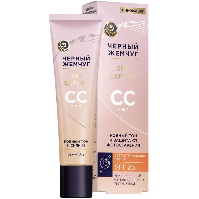 Крем для лица Чёрный Жемчуг сияние и выравнивание тона кожи 40 мл<br><br>Для ровного тона кожи без эффекта маски и жирного блеска попробуйте СС-крем SPF 25 со светоотражающими сферами от Чёрный Жемчуг. Он разработан экспертами бренда с учётом потребностей кожи в любом возрасте.<br><br>— Адаптивная тающая текстура с минеральными пигментами обеспечивает 12 часов покрытия без жирного блеска и эффекта маски. Невесомое лёгкое покрытие.<br>— SPF 25 создаёт защитный экран от UV-излучения, препятствует преждевременному старению и гиперпигментации.<br>— Витамин С — мощный антиоксидант, помогает клеткам противостоять воздействию свободных радикалов, придаёт сияние и сокращает морщины.<br>Результат: 12 часов покрытия без жирного блеска и эффекта маски; ровная, сияющая кожа. СС-крем рекомендуется наносить поверх базы под макияж или уходового крема.<br><br>Состав: Aqua, Ethylhexyl Methoxycinnamate, Glyceryl Stearate, Diethylamino Hydroxybenzoyl Hexyl Benzoate, Ethylhexyl Salicylate, C12-15 Alkyl Benzoate, Glycerin, Aluminum Starch Octenylsuccinate, Coco Caprylate/Caprate, Isopropyl Myristate, Talc, Butyrospermum Parkii (Shea Butter), Dimethicone, 1,2-Hexanediol, PEG-40 Hydrogenated Castor Oil, Adenosine, Boron Nitride, Carnosinex, Ceteareth-20, Ceteareth-12, Cetearyl Alcohol, Cetyl Palmitate, Ethylparaben, Glycine, Mica, Methylparaben, Silica, Niacinamide, Phenoxyethanol, Polymethylsilsesquioxane, Polyacrylamide, Propylparaben, C13-14 Isoparaffin, Laureth-7, Sodium Stearoyl Glutamate, Sodium Ascorbyl Phosphate, Tocopheryl Acetatex, Tropaeolum Majus Flower/Leaf/Stem Extract, Parfum, Xanthan Gum, CI 77491, CI 77492, CI 77499, CI 77891.