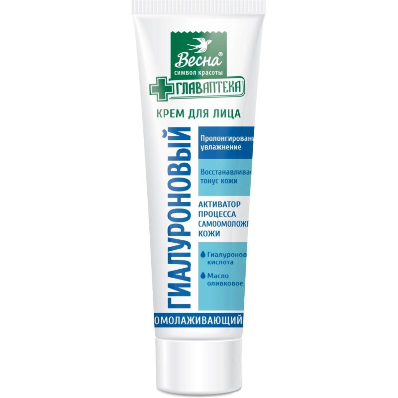 Крем для лица Весна Гиалуроновый омолаживающий 45 мл<br><br>Омолаживающий крем для лица Весна Гиалуроновый насыщен гиалуроновой кислотой, которая оказывает пролонгированное увлажнение, а также восстанавливает тонус кожи. Благодаря лёгкой структуре, крем быстро впитывается, не оставляя жирной плёнки. Лицо выглядит свежим и увлажнённым сразу после применения.<br><br>Объём: 45 мл.