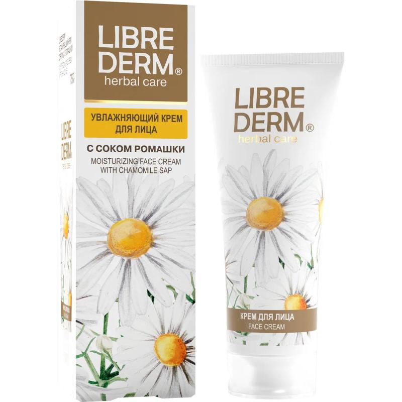 Крем для лица Librederm с ромашкой увлажняющий 75 мл<br><br>Крем для лица с соком ромашки эффективно увлажняет, восстанавливает и успокаивает кожу. За счёт насыщенной текстуры и активных компонентов экстракта ромашки крем придаёт коже особый комфорт, мягкость и бархатистость. Высококонцентрированный экстракт ромашки благодаря высокому содержанию азулена и бисаболола, обладает успокаивающими, восстанавливающими, заживляющими, антиаллергическим свойствами. Устраняет небольшие покраснения и раздражения кожи. Эффективно увлажняет кожу, придаёт эластичность, содействует регенерации клеток, способствует проникновению вглубь кожи остальных активных ингредиентов крема. Масла абрикоса и оливы эффективно дополняют действие экстракта: питают и способствуют сохранению естественной увлажнённости кожи.<br><br>Состав: коллаген, косметическая основа, кумарин, оливковое масло, эластина гидролизат, экстракт ромашки лекарственной, масло абрикоса.