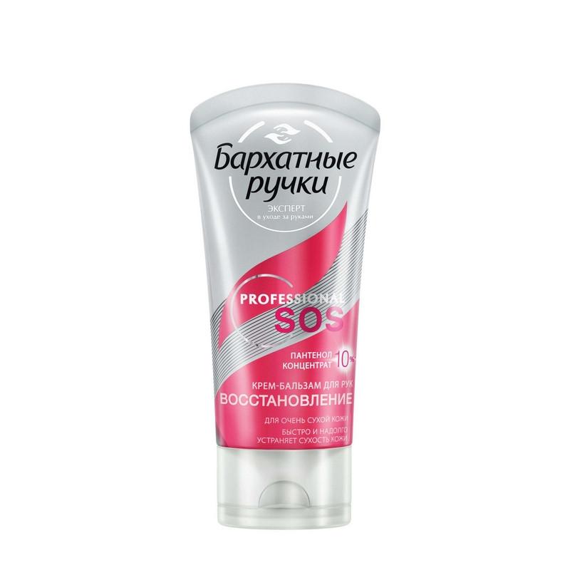 Крем-бальзам для рук Бархатные ручки SOS-восстановление 45 мл<br><br>Командой профессионалов в уходе за руками был разработан экстра-восстанавливающий крем-бальзам для рук глубокого действия, который устраняет причины появления сухости, быстро восстанавливает и надолго смягчает кожу рук. Подходит для очень сухой и потрескавшейся кожи.<br><br>Способ применения: наносите крем на чистую, сухую кожу лёгкими массирующими движениями.<br><br>Состав: Aqua, Glycerin, Cetearyl Alcohol, Paraffinum Liquidum, Cyclopentasiloxane, Urea, Dimethicone, Panthenol, Glyceryl Stearate Citrate, Triisostearin, Potassium Cetyl Phosphate, Prunus Amygdalus Dulcis (Sweet Almond) Oil, Simmondsia Chinensis (Jojoba) Seed Oil, Squalane, Aloe Barbadensis Leaf Juice, Tocopheryl Acetate, Allantoin, Dimethyl Sulfone, Biosaccharide Gum-1, Hydrolyzed Silk, Artemia Extract, Caprylyl Glycol, Disodium EDTA, Ethylparaben, Methylparaben, Pantolactone, Paraffin, Parfum, Phenoxyethanol, Potassium Sorbate, Sodium Benzoate, Sodium Sulfite, Alpha-Isomethyl Ionone, Butylphenyl Methylpropional, Citronellol, Hexyl Cinnamal, Hydroxycitronellal, Limonene, Linalool.