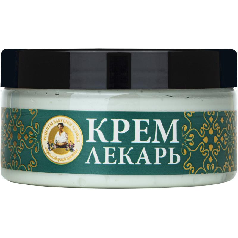 Крем для рук и тела Рецепты бабушки Агафьи Лекарь Агафьи 100 мл<br><br>Крем-лекарь создан по традиционному рецепту сибирской травницы Агафьи. Его живительная сила заключается в уникальном составе, который состоит из 65 натуральных природных компонентов, специально подобранных для сохранения здоровья и красоты кожи на долгие годы. Целебный состав крема состоит из активных компонентов — натуральных масел, соков и экстрактов дикорастущих сибирских растений, которые восстанавливают кожу. Кедровое, репейное, амарантовое и льняное масла интенсивно увлажняют, питают и смягчают кожу всех типов. Экстракты ромашки, череды, кладонии снежной, медуницы, девясила и шалфея снимают раздражение и оказывают противовоспалительное и регенерирующее действия. Д-пантенол и масло облепихи ускоряют процесс заживление ран и трещин. Масла розмарина и можжевельника оказывают антисептическое и противовоспалительное действия. Выжимка сибирской лиственницы и настой шишек чёрной ольхи снимают усталость и напряжение. Комплекс витаминов A, C, F, D, PP повышает защитные свойства кожи. Сок брусники, северной клюквы и арктической морошки повышают тонус и заряжают кожу энергией. Крем подходит для ежедневного применения для защиты кожи лица и тела в любое время года, а также может использоваться как универсальный заживляющий и восстанавливающий крем для всей семьи.<br>Способ применения: нанесите небольшое количество крема на сухую чистую кожу мягкими массирующими движениями.<br>Состав: Aqua, Glycerin, Cetearyl Alcohol, Stearic Acid, Palmitic Acid, Isopropyl Palmitate, Pantenol, Cyclopentasiloxane, Carbomer, Sodium Cetearyl Sulfate, Ethylhexylglycerin, Sodium Hydroxide, Pinus Sibirica Seed Oil (кедровое), Glycine Soja Dauricus Oil (даурской сои), Abies Sibirica Oil (пихтовое), Hippophae Rhamnoides Fruit Oil (облепиховое), Juniperus Communis Fruit Oil ( можжевёловое), Amaranthus Caudatus Seed Oil (амарантовое), Rosa Canina Fruit Oil (шиповника), Arctium Lappa Root Extract (репейное), Linum Usitatissimum Seed Oil (льняное) , Cera Alba (Алтайский горный воск), Salvia Officinalis Extract (шалфея), Chelidonium Majus Extract (чистотела), Melissa Officinalis Leaf Extract (мелиссы), Helianthus Annuus Seed Oil (подсолнечника), Cetraria Nivalis Extract (кладонии снежной), Mentha Piperita Oil (перечной травы), Schizandra Chinensis Fruit Oil (лимонника дальневосточного), Juniperus Communis Fruit Extract (красного можжевельника), Brassica Juncea Oil (горчицы), Plantago Major Leaf Extract (Настой листьев подорожника), Mumie (Мумиё алтайское), Artemisia Vulgaris Oil (полыни), Vaccinium Macrocarpon Fruit Juice (Сок брусники), Vaccinium Angustifolium Fruit Juice (Сок черники), Rubus Chamaemorus Fruit Extract , Rubus Idaeus Juice, Lonicera Caerulea Fruit Juice (Сок жимолости), Rhaponticum Carthamoides Root Extract , Malva Sylvestris Flower Extract (мальвы), Avena Sativa Kernel Flour (овсяного толокна), Borago Officinalis Leaf Extract, Draba Nemorosa Extract, Hippophae Rhamnoides Kernel Extract, Betula Alba Bud Extract, Sorbus Sibirica Extract, Honey Extract ), Royal Jelly Extract, Panax Ginseng Root Extract , Primula Vulgaris Oil ,R Benzyl Alcohol, Parfum.