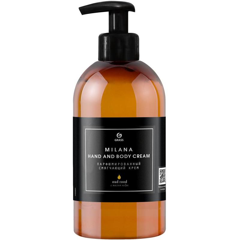 Крем для рук и тела Grass Milana Oud Rood 300 мл<br><br>Мilana hand and body cream — линейка парфюмированных кремов от Grass. Лёгкая текстура кремов позволяет им быстро впитываться и увлажнять кожу, придавая ей шелковистость и ухоженный вид, не оставляя ощущения жирности и плёнки. Обеспечивают питание и восстановление благодаря растительным маслам — карите (ши), виноградных косточек, канолы, а также витамину Е и пантенолу в составе. Обладают уникальными свойствами за счёт эфирных масел: кедра атласского, лаванды и герани. Подходят для ежедневного применения, массажа рук и SPA-ухода. Удобный формат продукта обеспечивает экономичный расход и лёгкость использования кремов. Парфюмированные композиции разработаны специально для нашей новой линейки. Аромат придаёт неповторимый шарм, поднимает настроение и дарит наслаждение. Идеально сочетается с парфюмированным жидким мылом Milana (Spring Bloom, Oud Rood, Green Stalk).<br><br>Способ применения: лёгкими массажными движениями нанести небольшое количество крема на сухую чистую кожу рук.<br><br>Состав: aqua, coco-caprylate, dipropylheptyl carbonate, cetearyl alcohol, olus oil (and) vegetable oil, behenyl alcohol, sodium polyacrylate (and) dicaprylyl carbonate (and)polyglyceryl-3 caprate, butyrospermum parkii (Shea) butter, phenoxyethanol (and) ethylhexylglycerin, disodium ceterayl sulfosuccinate, tocopheryl acetate, lavandula angustifolia oil, fragrance.